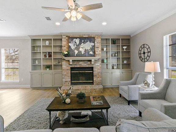 This great property consists of 2 legal lots containing 1.2 acres each. The home has 2086 feet of living area, a carport, a detached 2 car garage/shop and a 20 X 50 RV cover. The open floorplan is perfect for entertaining guest. The living room features a wood burning fireplace and custom built-in bookcases. The dining area is large enough to accommodate a table for 12. The kitchen has new stainless appliances, an island and a nice corner window overlooking the rear yard. All of the bedrooms are oversized. The master bedroom features a private office. The master bath has 2 walk-in closets, a linen closet, a double vanity and a soaking tub/shower combo. The roof and HVAC system have been replaced as well as the tubs, sinks, hot water heater, garage doors, light fixtures and all of the flooring. Owner/Agent.