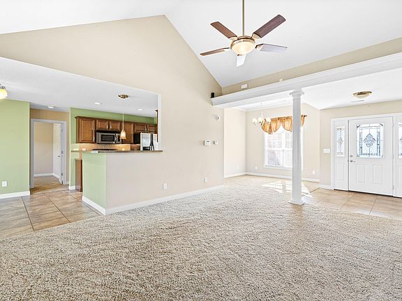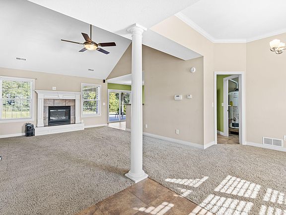 Escape to the tranquility of Timberlake Estates in Boonville! This stunning 3-bedroom, 2-bathroom home complete with a 3-car garage rests on a sprawling 1.4-acre lot. Step inside to discover a well-thought-out split bedroom floor plan. The vaulted ceilings and open layout give a very spacious feel to the home. The living room features a gas fireplace, perfect for chilly evenings. The formal dining room adds an elegant touch to the home and also could be used as an office, reading nook, or bonus space. The kitchen features plenty of countertop and cabinet space as well as stainless steep appliances. The heart of this home is the spacious master suite, complete with a large walk-in closet with built-in shelving and a luxurious six-foot walk-in tile shower, providing a spa-like retreat. When you're ready to unwind outdoors, the covered back patio and private backyard provide the perfect oasis.
