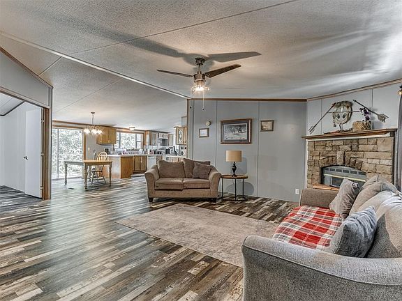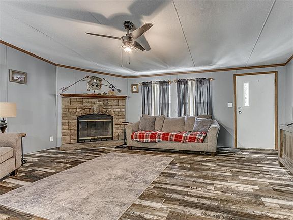Situated on a beautiful one acre lot, this spacious home features 4 large bedrooms or 3 bed/office and 2 full bathrooms. Large main living area with a beautiful corner stone fireplace and lots of natural light. Living area seamlessly flows into the dining room and kitchen area that includes a breakfast nook and lots of cabinet space. Master suite features ample closet space and master bath with double vanities, large shower and garden tub. Some other features include new laminate flooring, wooden decks and a large shed. Add your own personal touch to this one and make it yours today!