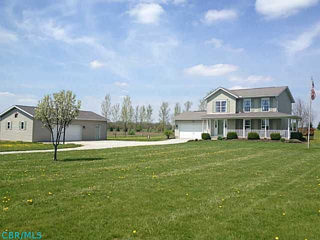 Beautiful Home on almost 2 acres with mature trees! Move in ready! Newer flooring on main level, Open floor plan with oak cabinetry, SS Appliances, great counter space, Mudroom & 1/2 bath near garage, Spacious bedrooms, Full Basement! Wrap around covered porch, deck in back leads to above ground pool, 24x40 4 car detached garage with concrete floor & electric. Beautiful Setting and Home!