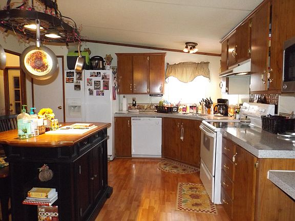One owner home, updated and move in ready! Large 12x16 covered front porch/deck. Center Great Room w/Fireplace. Split Bedroom design. 2 full updated Baths incl: walk-in tiled shower in Master Bath. Also 3 closets in Master Bedroom. Open Kitchen to Dining Room. Newer Kitchen appliances stay, Dishwasher NEW 2018. Designer island & light fixture passes with property. Main level Laundry Room off Kitchen. Roof NEW 2012, tilt-in replacement windows new 2006. NEW well pump 2017. NEW rear deck 2018.