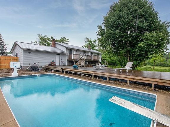 Fantastic Split Level with Large two tier Trex Deck and In-Ground Pool on over a Acre and a Half ! 4 bedrooms, 1.50 baths. Gorgeous front porch that sits near the Well Landscaped front yard. Upper level provides large eat-in kitchen, living room, 3 bedrooms and a full bath, Bedrooms Freshly Painted! The Lower level features 1 Large bedroom, a Half bath ready to be finished to a full bath, Large Family room with Wood Burning Fireplace, and access to the two car garage. Back yard has Fenced in areas for pet lovers, different decks, and patios perfect for Entertaining. Updates in the last 5 years include; Steal roof, gutters, Siding, Windows, Interior and Exterior doors, Garage Door, Electrical Pannel, Water proofing (Precautionary Measures) New Pool liner as well as New Pool Heater ready to be hooked up! All appliances stay. Move-in ready! Great location with the Hospital .5 miles away, as well as restaurants close by. Fantastic opportunity!