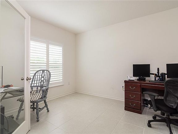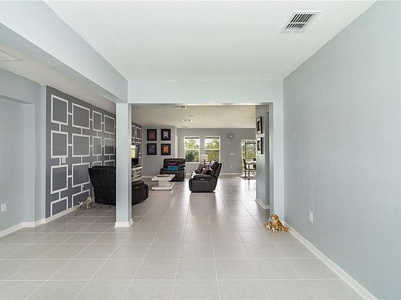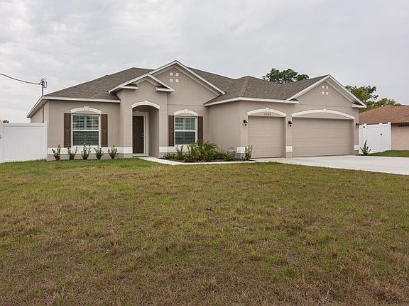 Why wait for new construction when you can have this 7-month young home all to yourself? This gorgeous 4-bed/3-bath/3-car garage/2400+ square feet Maronda built Sierra floorplan is situated on a huge .45 acre corner lot and is still under the builders 1-year warranty. The Sierra is a tri-split plan and includes a formal dining room, den/office w/French doors, large great room, spacious kitchen with granite countertops and stainless steel appliances and room for sizeable breakfast table. Huge master bedroom with his/hers closets and trey ceiling, master bathroom w/garden tub and dual sinks. Roomy bedrooms 2/3 and bath-2 are in one corner and bedroom 4 w/ensuite bath-3 is by itself offering privacy for everyone. Sellers have added a unique custom designed accent wall in great room. Interior features 20" tile throughout entire living area and plantation shutters throughout home. Laundry room w/washer and dryer included. Rear screened lanai has plenty of room for table and chairs. Large 3-car garage each with door openers. Other extras added by seller include, water softener and irrigation system and entire backyard is fenced. Extended commuting time have led the seller to make the difficult choice to sell this beautiful home.