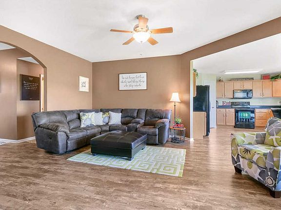 Take a look at this beautiful open concept home in Southwest school district. Nestled in a quiet cut-de-sac. Split bedroom layout with a gorgeous master bedroom with ensuite bath and walk in closet. Great open layout, large kitchen, eat in dining area, 2 more bedrooms with another full bath. Extra large 2 car garage! Lots of room for a work bench, bikes, mower, whatever you need to store. new maintenance free flooring. Tray ceiling in the master bedroom. Outside find a covered patio giving you a place to sit and relax. Enjoy the open backyard with no one behind you! Take advantage of this move in condition home! You won't be disappointed, it is spotless and waiting for you! Enjoy the neighborhood pool!