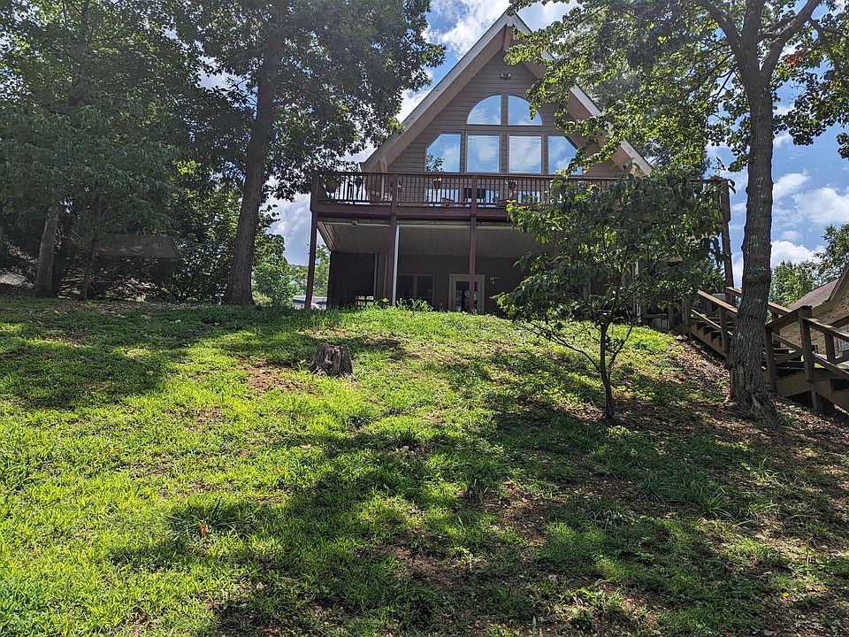 This Chickamauga Lake lakefront home is on deep water all year. A dock is in place with a dbl drive-up jet ski dock attached. You can move right in or rent it out right away. A list of included items is below. This lot is on a slope. An asphalt path to the water has been put in. Although the lot is walkable, the buggy to drive down to the dock has been included. This is an A-frame style home on the outside. When you enter the home, you are in a wonderful wood cabin. Easy to heat and cool, the utilities are minimal here. Mature trees keep it shady. If you want the huge lake and hills in the background view, tree removal will make that view nothing short of spectacular. TVA line is right at the water so clearing trees is no problem. Fall provides a super view from the home. It is hard to find 180-degree views of Chickamauga Lake like you have from this property. This home is surrounded by beautiful lake front homes. Shopping mall and downtown Chattanooga are approximately 35-40 minutes. There are three restaurants you can get to with a 20-minute boat ride or less. Gas, food stores, Ace Hardware, pharmacist and more are within a 15-minute ride. Sunsets are spectacular from this home setting. It is facing the western sky. Call today for your showing. Buyer to complete due diligence. Buyer is responsible to prove all pertinent information is correct. Info is deemed accurate per owner and tax records. There is no HOA and no restrictions to our knowledge. Depending on how you utilize the basement, you could have more bedrooms here. The deck and steps are going to be replaced soon. Material has been bought. Plenty of space to build an outbuilding or large garage or two. Owner says, ''bring us an offer''. Things that remain if wanted are. -1994 Chapparal 21ft Boat, 5.7 MerCruiser Engine, excellent to mint cond.
