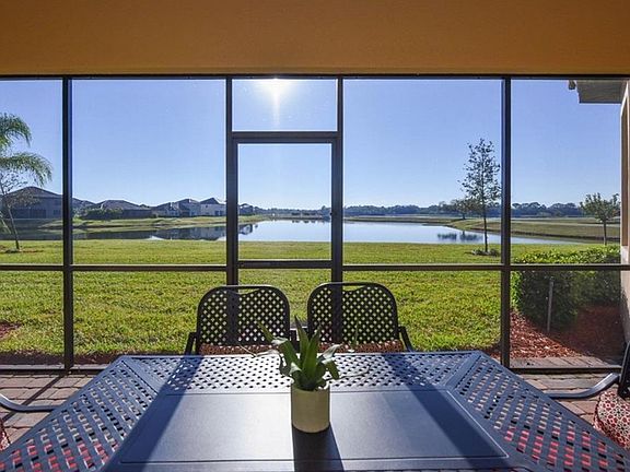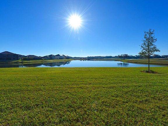 Absolutely stunning water views with coveted southern exposure will take your breath away!! This premium home site can't be replicated with its sweeping view of Bridgewater's chain of 3 large lakes and the community namesake bridge. One step in the door and you will be wowed by the spectacular lake view and gorgeously appointed home. The Cambridge is a spacious great room floor plan that is designed for everyday relaxation and entertaining, with three bedrooms, a formal dining room and stylish finishes that create an atmosphere of elegance. You will appreciate the luxurious kitchen appointed with granite countertops, upgraded cabinetry, a handsome tile backsplash, stainless steel appliances and space for casual dining. Step out to the screened patio to take in one of Florida's beautiful sunsets over the expansive lake views. Home is in immaculate condition and has been barely lived in. Other appointments include paver driveway and lanai, tile on a diagonal throughout living area and installed surveillance system. Bridgewater offers easy convenience to championship golf, tennis, fitness facilities, nature trails, shopping and dining. Both top-rated schools and the Mall at University Town Center are only minutes away as is the beautiful, sugary sand beaches that Florida is known for. Plenty of room to build a pool framed by 3 magnificent lakes creating the perfect venue for entertaining.