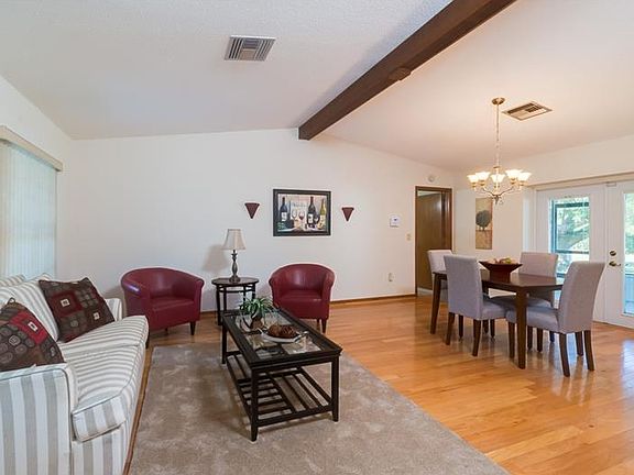 Located on 1 +- acre in the Heart of Spring Hill, this 3 bedroom, 2 bath and 2 car garage home encompasses 1721 SF Living and 2569 SF Total. The home's open floor plan includes separate living room and dining area, complete with wood floors. BR 3 can be used as office/den or bedroom (has closet). The 1+- acre offers lush landscaping with a private and quaint setting. 2017 HVAC. Detached garage and RV/Boat Parking. Attached garage has room for 1 car and golf cart AND a climate controlled office/workshop/hobby room. Double pane windows. Blinds in the doors. Walk in closets in Master and Bedroom 2. Stainless steel appliances. Settlement repair done through insurance company, all documentation available and insurable. The Suncoast Parkway, located nearby, offers easy access to Tampa Airport.