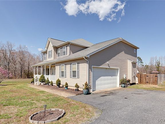 Welcome to Newtown in upper King & Queen County and peaceful rural living! This impressive and spacious, two-story, home has much to offer and a certain "wow" factor you'll appreciate. Let's start with the paved driveway and ample parking you'll notice upon arriving. From the full masonry front porch, step into the wood floored foyer that is open to the second level above. French doors to the right lead to a fantastic office area that is sure to appeal to business owners and those who work from home. This would also make a great hobby room or study/library. Columns separate the living room from the formal dining room which features a bay window and easy kitchen access. The kitchen boasts granite counter tops, a pantry, under cabinet lighting, an island, dining area and stainless steel appliances all of which convey! Open to the kitchen is a comfortable family room accented by a gas fireplace. On the rear of the home, and providing deck access, is a Florida/ sun room you will look forward to spending time in! What a wonderful social space or place to enjoy morning coffee. Upstairs, the jaw-dropping master suite will make you smile as you take in all it offers including; a dramatic double door entry, a separate sitting area, a two-sided gas fireplace, columns, an enormous walk-in closet, and a full bath complete with two vanity areas, a jetted garden tub and a separate shower! Three more bedrooms are up here along with another full bath w/ tub/shower combo. The attached garage is finished and boasts a 220v electrical system, an EV charging station and a generator hookup. On the expansive deck in the privacy fenced back yard, retractable awnings provide shade. There's also a chain link fenced area for dogs, goats, or pets of your choice, a garden shed, and a larger outbuilding with an overhead door! Note the large shipping container on the property! This stays a provides space for all the storage one could hope for. Fort Walker and Bowling Green are close by and Richmond & Fredericksburg are commutable from here!
