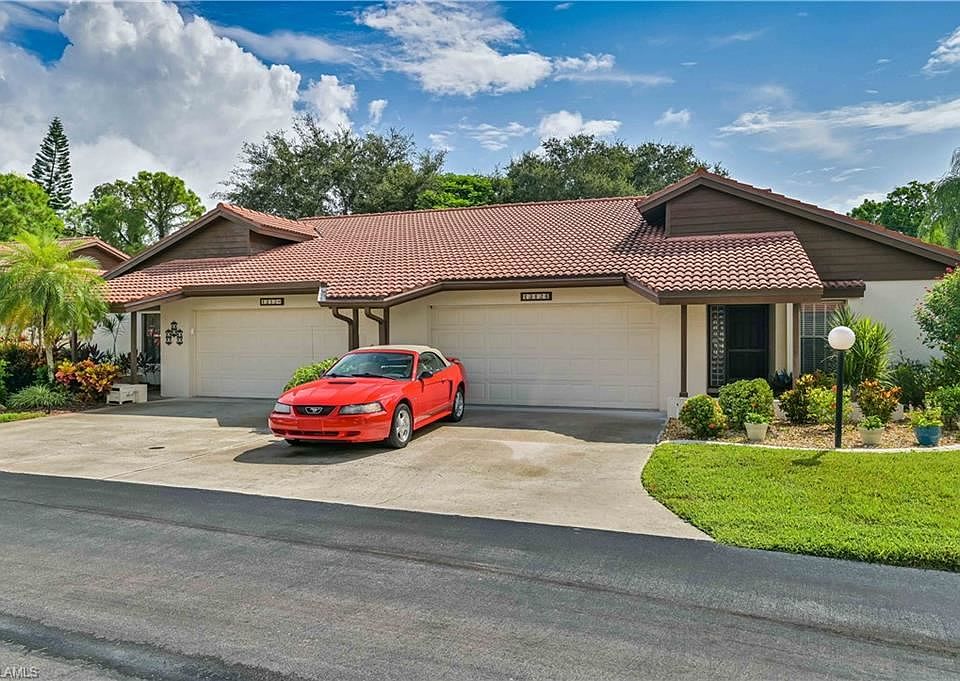 This highly desirable 2 Bedroom 2 Bathroom 2 car garage Villa in Pinebrook Woods Subdivision in the gated community of Pinebrook which is conveniently located behind the Bell Tower Shops, close to restaurants,entertainment,the SWFL International Airport and 1/2 a mile to the TenMile Linear Park. This Villa features newer A/C installed 2019, tile in the entry, bathrooms and kitchen.