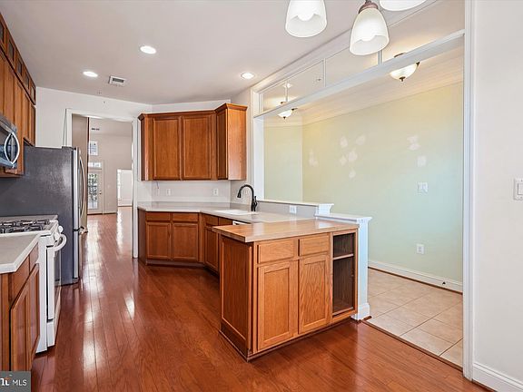 Welcome to 13124 Winding Trail Rd, a well-maintained 3BR, 3BA townhome villa in the sought-after 55+ community of Victoria Falls. This active neighborhood offers resort-style amenities including a clubhouse, spa, fitness center, walking trails, indoor/outdoor pools, pickleball & tennis courts, and beautifully landscaped green spaces. The home features hardwood floors, custom plantation blinds, and an open layout ideal for comfortable living. The main-level primary suite features a seated shower with grab bars, a double sink vanity, and a walk-in closet. The table-space kitchen features 52” and 42” walnut cabinetry, ample counter space, and a newer GE bottom-freezer refrigerator. The living room offers cathedral ceilings and a marble-framed gas fireplace with a blower and access to a brick patio. A second bedroom, full bath, and laundry complete the main level. The upper level includes a loft/flex space with a bedroom with two closets, bath, linen closet, and utility room—perfect for guests, family room or an au pair suite. Enjoy maintenance-free living, with lawn care and exterior upkeep included in the HOA. The home interior walls are prepped to paint. Sold in "as is" condition. Conveniently located near shopping, dining, and major routes, including Rt 1, I-95, and BW Pkwy.