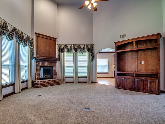 This impressive custom built home located on a large corner lot has been meticulously maintained! Large & open living room downstairs with soaring ceilings, beautiful brick hearth fireplace & a large built-in entertainment center. Beautiful kitchen with granite counters, glass tile backsplash, lots of custom cabinetry and island workspace with access to the formal dining room that has wood floors. Utility room is also a SAFE ROOM! The master bedroom features ambiance lighting in the crown moulding, HUGE walk-in closet as well as a double vanities, lots of built-in storage and a HUGE walk-in shower in the bathroom. Upstairs features 2 bedrooms, both w/walk-in closets featuring built-in shelves and a shared bathroom. Also upstairs is a LARGE second living/den with built-in bookcases, the MAN CAVE (with 2 closets -would make a great 4th bedroom!) and a storage room so large it's currently being used as an office! Sprinkler system, blinds, extra storage...THIS IS IT!!