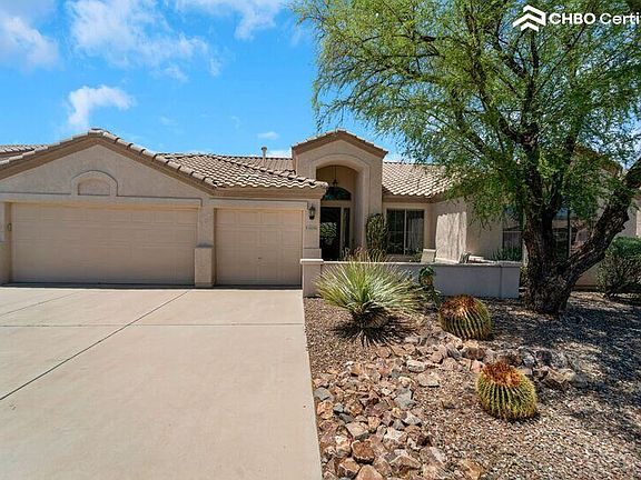 Featuring a 2,193 square feet of open, airy, single level living space.and a three car garage. The entry welcomes you with cosy seating and a view of the Catalina mountains. Professionally furnished throughout with contemporary furniture that resonate southwestern flair. The primary bedroom includes a king bed with, dual sinks, a walk in shower, a garden tub, and a extra large walk in closet. Guests will enjoy the second bedroom furnished with a king bed. The third bedroom is presently set up as a home office with a desk, chair and conversational seating. The open concept kitchen features premium appliances and is stocked with all new dinnerware, cookware, small appliances, etc. Open the great room to bring the outdoors in, or enjoy the pizza oven and relax in a spacious yard including a covered outdoor patio, garden swing, and a fire pit. The fully fenced back yard provides privacy and a peaceful sanctuary.
