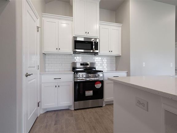 This John floor plan includes 1,310 Sqft of total living space, which includes 1,200 Sqft of indoor living space & 110 Sqft of outdoor living space. There is also a 385 Sqft, two car garage with a storm shelter installed. Home offers 3 beds, 2 baths, 2 covered patios, & a utility room! The living room includes high ceilings, exquisite wood-look tile, a ceiling fan, the perfect sized windows, & Cat6 wiring. The kitchen spotlights custom-built cabinets with decorative hardware, stainless-steel appliances, decorative tile backsplash, elegant countertops, & wood-look tile. The primary suite features 2 windows, a ceiling fan, our cozy carpet finish, & a sizeable walk-in closet. Attached is the primary bath, which holds a dual sink vanity complimented by a 3 CM quartz countertop, satin nickel features, & a walk-in shower with tile to the ceiling. Outdoor living includes fully sodded yards, a smart home irrigation system, & 30-yr weather wood shingles. Other amenities include a water-saving tankless water heater, a fresh air intake system, R-15 & R-38 insulation, & so much more!