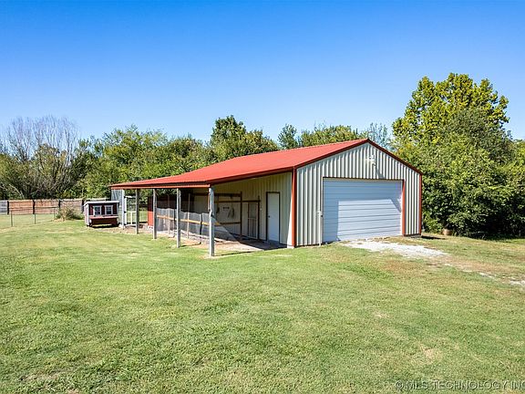 Beautiful custom home built in 2013. House sit's on 2.5 acres and features 4 LARGE bedrooms with a split bedroom floor plan, 2 full baths, open living room/gourmet kitchen, an office and indoor safe room. 1,200 square foot shop with lean to, BIG covered patio, fenced yard, newer HVAC and tankless water heater. New interior paint throughout most of the house. All appliances stay! Only a few miles away from the Will Rogers turnpike. This property is in great area with pasture views. Hurry and see this one it checks a lot of boxes!