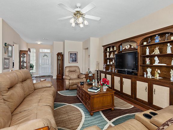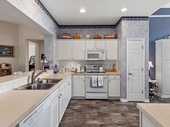 POPULAR 3/2 SANIBEL IN SPRUCE CREEK GOLF & COUNTRY CLUB. Picturesque back yard-enclosed lanai under heat and air plus an outdoor patio. Boasts front kitchen, large inside laundry with cabinets. Wood or vinyl floors - no carpet in house! Great curb appeal. Newer HVAC 12/2015. Great home in a superb area! Some furniture available for sale.Monthly HOA $135.00 includes security, common area maintenance, trash removal and use of amenities.