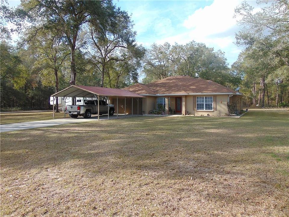 Back on the Market!!! 2007 3/2 on 2.10 acres in beautiful Rolling Hills on paved road. Come home to this beautifully maintained property with plenty of room to roam. Home sits on landscaped corner lot with mature maintained oaks. Split bedroom plan,spacious master bedroom with double doors and master bath has large walk in shower and garden tub. 50 amp RV hookup with water. 12x20 storage shed and a 20x27 carport. Screened back porch to view the wildlife with large back patio for entertaining. Water filtration/softener system. Exterior paint 2019. Centrally located between Dunnellon and Ocala for privacy and convenience. Only minutes to new World Equestrian Center. Call for Appt. today. Buyer to verify room measurements.