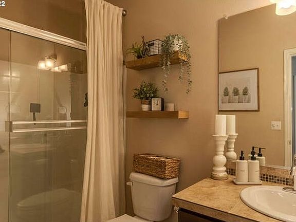 Spectacular Bull Mountain home featuring 4 spacious bedrooms and 3 full bathrooms! Tasteful finishes throughout, completely move in ready for you! Stunning kitchen features SS appliances, gas range, tile counters, wood laminate flooring and great storage! Open concept living on main level plus office! Relax in your private backyard with patio pavers and attention to detail. Primary suite is fantastic, spacious soaker tub, shower, plus roomy walk in closet. Excellent location!