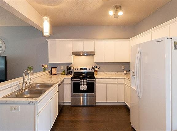 Charming 3 bedroom and 2 1/2 bath townhome with great location to shopping and schools. New engineered hardwood floors on entire first floor. New carpet on stairs, hall and bedrooms upstairs. New kitchen counters, refinished kitchen cabinets, new kitchen faucet. Large new shelf storage unit in kitchen. Oven and dishwasher less than 2 years old. Daylight basement has sheetrock waiting to be finished to have 540 more square feet. Deep one car garage and 2 parking spaces. Just waiting for you!