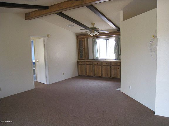 For more information on this property, contact the Listing Agent, Vera Wallace at (520) 918-5730 or VWallace@LongRealty.com. Private 5 acres are dividable if you wish into 1 acre parcels. Enjoy the fireplace just off the eat in kitchen. The livingroom has another dinning area with built in cabinets and ceiling fan. New carpet and fresh paint throughout this 1984 manufactured home. A large recreation room has sliding glass doors that lead to a covered patio and ramada. A seperate one car garage out back. This acreage backs to Sate Land and has amazing mountain views lots of natural desert vegetation. Plenty of room to bring your horses and animals. Must see!