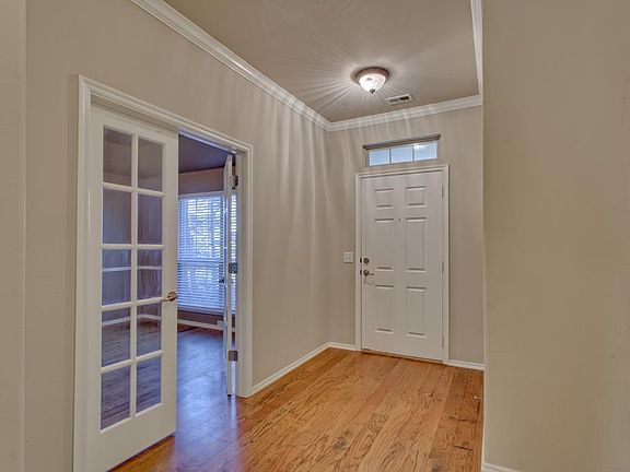 This beautiful and charming home awaits you in the desirable and lush Timberridge neighborhood. From the moment you walk in you will love the exquisite hardwood floors that first lead to two beautiful french doors that open up to a great sized office. From there walk into a large and open kitchen with lots of counter space, an island, white cabinetry, and stainless steel appliances. The kitchen is open to a spacious living room with a grand brick fireplace. There is brand new carpet and paint throughout the entire home which makes the home feel like it is brand new. The master is large as well as the master bathroom which offers double vanities, a whirlpool tub, and a walk-in shower. The secondary bedrooms and guest bathroom are on the opposite side of the home providing a true split floorplan. The backyard is a great size with a covered patio for these upcoming summer evenings. Quick access to Tinker AFB, Shopping & Restaurants near I-40, downtown OKC, & close access to I-240.