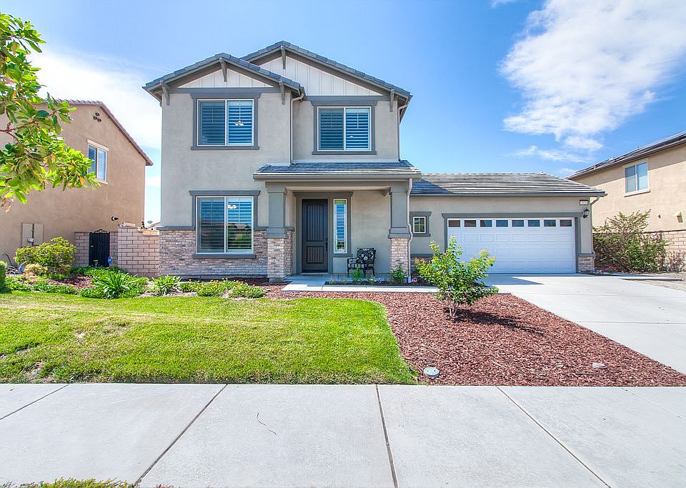 This STUNNING home built in 2012 boasts 4 large bedrooms, one of which is located on the main level. 3 full baths, also with one on the main floor, create amble space for any size family. This home has gorgeous tiled floors, made to mock the look of wood, just with less maintenance real wood requires, upgraded cabinets and countertops. The open floor plan inside and beautiful pavered patio space outside, make this home bright, airy and extremely easy to entertain in. The location is fabulous, being so close to the 91, 60 and 15 freeways for those consumers who have to utilize the freeways for work purposes. This home is sure to sell quickly!