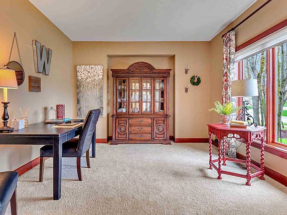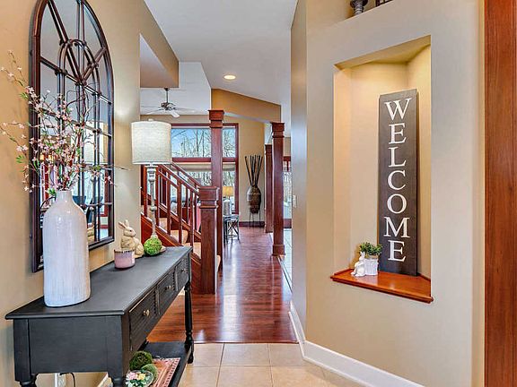 Gorgeous 5 bedroom, 3.5 bath, Bob Buescher custom built home with full finished daylight basement loaded with extras. Set in desirable Sorrento neighborhood on a quiet cul-de-sac lot that backs up to the neighborhood wooded common area creating a very private backyard retreat. Great curb appeal with stacked stone details, carriage light, professional landscaping & covered entry with transom door for a warm & welcoming home. The formal dining room, currently used as a home office, has a furniture niche & a big picture window for natural light. Open floor plan concept great room, kitchen & casual dining space. The spacious kitchen is equipped with an abundance of shaker style cabinetry, a planning/laptop desk, granite countertops, tiled backsplash, island w/breakfast bar, plus all appliances remain. The adjacent dining area has wonderful corner picture windows for scenic backyard views. Columns define the great room furnished w/double stacked floor to ceiling windows, a12â ceiling & wood burning fireplace. Main floor Master suite has a window seat, a big walk-in closet w/organization, plus ensuite bath has twin sink vanity, soaking tub & separate shower. A separate laundry room has a utility sink, folding counter & cabinetry for storage. Upstairs are 3 additional good sized bedrooms & a full bath w/twin sink vanity. Finished daylight basement ensures there is room for everyone w/a huge family room, game room w/barn door, 5th bedroom & full bath, plus all new carpet throughout this level. Extending you living space, you will love the maintenance free multi-level Trex deck & slate patio overlooking the woods. Heated 3 car garage adds storage & flexibility. Quality details throughout include niches, pocket doors, columns, hardwood flooring in the hallway & great room, plus easy-care tile flooring at the front entry hall, eat-in kitchen, laundry room & bathrooms. Window treatments stay, gas line in backyard for grill, ceiling fans, April Air HVAC & irrigation system. Students will attend award winning Carroll schools.