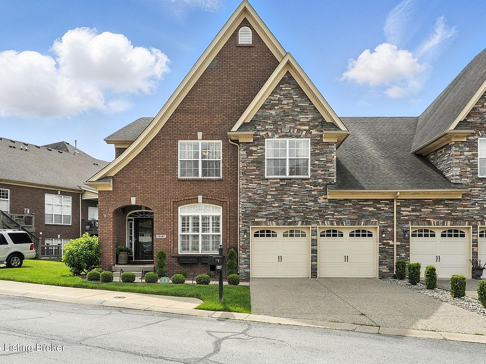 Welcome to this exceptional end-unit townhouse that lives better than new! Thoughtfully designed for comfort and convenience, the main level features a spacious primary suite, laundry room, home office, kitchen and an attached garage—all on one floor. From the moment you enter, you're greeted by a dramatic two-story foyer, gleaming hardwood floors, and an abundance of natural light. The recently remodeled chefs kitchen is a standout with a generous island with granite countertops, stainless steel appliances, designer fixtures, gas cooktop and a double oven. The primary suite is a true retreat, offering a double tray ceiling, a large walk-in closet, and a luxurious en-suite bath. Upstairs, you'll find two oversized bedrooms, a full bath, and a remodeled flexible loft area that has been opened to overlook both the great room and kitchenperfect for a second living space, or creative workspace. Elegant features include French doors to the office, plantation shutters throughout the first floor, a granite-surround fireplace, oil-rubbed bronze fixtures, dimmable lighting, custom cabinetry in the laundry room, and a ceiling fan on the covered deck. As a rare end-unit, this home is filled with extra natural light from oversized windows. The full walk-out basement offers ample storage or potential for future finishing. Situated just 3.3 miles from the Gene Snyder Freeway and located in the award-winning Oldham County School District, you're also only minutes from the shops, dining, and entertainment of Prospect. Don't miss your chance to own this extraordinary homeschedule your private tour today!