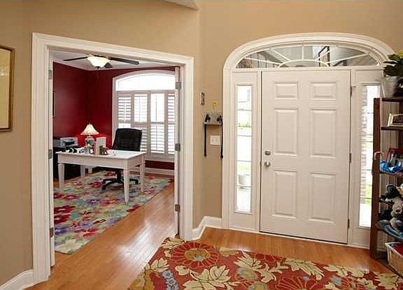 Short Sale! This breathtaking luxury townhouse in the Gardens of Hunters Ridge shows beautifully with hardwood floors throughout the first floor and custom plantation shutters. The kitchen includes maple cabinets finished with granite countertops and a tumbled granite back splash, a double oven with a 6-burner gas stove top and a large corner pantry. The 2-story living room features a corner stone, floor to ceiling gas fireplace and built in bookcases or display shelving. The king-sized master bedroom has plantation blinds on the windows and a 14' ceiling, which is accented beautifully by the double tray crown molding. The master bath features tiled floors, dual vanities with granite countertops, brushed nickel faucets, a custom tiled, 2-person glass spa shower plus separate whirlpool tub. The first floor laundry room is finished with slate flooring, tumbled stone back splash, a utility sink, and cabinet space. The second floor includes a nice sized bedroom, with a vaulted ceiling, walk-in closet, and access to the bathroom; and an office that could be used as a 4th bedroom, with french doors off entry and large windows that let in plenty of light. Also upstairs is a loft area and a bonus room with crown molding and chair railing. There is great expansion potential in the partially finished walk-out basement, which will allow for a total of 4200 sq.ft. once finished! The basement is lined with tons of windows and finished area that offers a wood working area. The outdoor entertainment space includes a large, covered, wooden deck with wrought iron spindles and a roughed in gas line for a grill, plus an extended covered patio off of the basement. This home is located in the award-winning North Oldham School district.