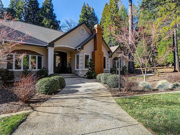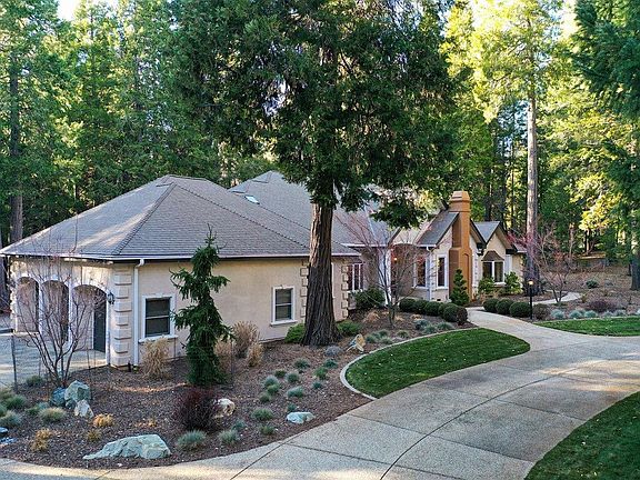 Welcome home to this luxury, custom-built, single-story home located minutes from Nevada City in the desirable Woodlands neighborhood. The circular driveway greets you, complete with the scent of majestic cedar & pine trees - the first hint of this 1.7-acre landscaped oasis. Enter the updated home and you'll immediately see the attention to detail. Expansive hallways, large windows, glass doors, coffered ceilings, and skylights bring in lots of light. Beveled French doors lead to a fabulous office with walnut cabinets and a gas fireplace. The gourmet kitchen is an entertainer's delight with granite counters, Bertazzoni cooktop, and stainless-steel appliances. The master bath has a spacious walk-in shower, soaking tub, fireplace, dual sinks, a large walk-in closet, and private patio with Sundance spa. Outside, enjoy the park-like backyard and patio featuring a fire pit, and picnic area. The 3-car garage has 9' doors, epoxy flooring and floor-to-ceiling cabinets.