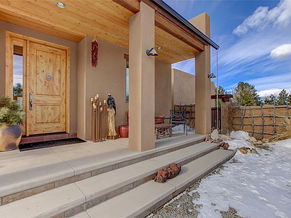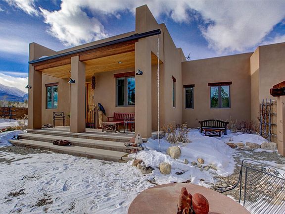 This riverfront custom home in Chaffee County's premier neighborhood, Mesa Antero is situated on 3.4 partially wooded acres adjoining Brown's Creek. The property features a full circular driveway, 1000 feet of walking trails (note all of the snowshoe prints in the snow) and over 300 feet of private creek frontage. Take in the magnificent views of the Sawatch and Collegiate Mountain Range from your kitchen or from the private covered patio. A large great room with a wall of windows and tall ceilings to help blur the lines between indoors and outdoors. Enjoy the warmth of your wood stove from the large open kitchen of knotty alder cabinets and stainless steel appliances. A large pantry is located next to the kitchen. This home is 2,162 square feet with a main floor master with an ensuite bathroom, 2 additional bedrooms, a study, and another full bathroom. Don't miss the private patio off of the master suite! A large three car garage with a workshop for your toys!