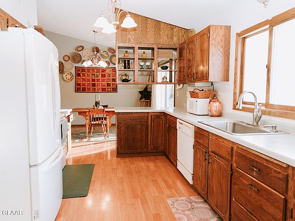 Vaulted ceiling gives you an open kitchen, dining and living area! Main level has a master ensuite & 2 additional bedrooms and a bathroom. Downstairs is a large great room with a cozy fireplace. Downstairs there is also an additional bedroom & bathroom and another room that with an egress could be the 5th bedroom. Quiet street, close to schools!