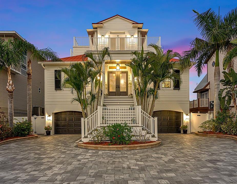 FALL IN LOVE with this GORGEOUS Apollo Beach WATERFRONT Pool home, just a five minute boat ride into Tampa Bay! No HOA or CDD! Completely updated and super spacious with 3,979 SqFt heated/7,475 SqFt total living space with 4 bedrooms, 3.5 bathrooms, dining room, open concept family/kitchen with a breakfast space, foyer, loft, 3 outdoor decks, a 2 car garage (with EV charging), a workshop space, a huge roof-top deck, fully fenced yard and a NEW dock with a NEW 13K LB boat lift on a deep water canal! This home is perfect for a multi-gen residence or vacation rental. The first floor boasts an amazing guest retreat with a stellar bathroom and a huge bonus room with space to expand. This home has been recently renovated to include a NEW driveway with pavers, fresh exterior paint, NEW hurricane impact windows and doors, (2) NEW Trane a/c units with aluminum platforms, (17 & 16 seer) NEW water heater, NEW whole house water softener, NEW exterior lighting and fans throughout, NEW custom functional exterior shutters, Trex composite rearstairs and NEW protective vinyl fencing for the fur babies near the dock and landscaping. The interior updates include all NEW floor to ceiling tiled feature wall with an electric fireplace, side cabinets with Quartz counter tops and decorative shelving. In the kitchen, the cabinets have been re-faced, a NEW designer backsplash installed along with a pot filler, NEW Thermador gas cooktop with custom stainless hood, NEW Bosch dishwasher and NEW oven/microwave. The office space was converted to provide a glamorous master walk-in closet with premium lighting and built-ins. The other portion of the office was converted to provide a storage closet with access from the foyer. NEW ceiling fans in the great room and bedrooms as well. There have been lighting updates on the second and third level and much more. The home is also ready for an elevator with a shaft built-in. Take a dip in your resort worthy salt-water pool after a day on the water or relax in the heated spa, all on wi-fi control. A new chlorinator and filter was just installed. The electrical panel is wired for a generator and includes a soft-start feature. So much to enjoy in this beautiful home! Walk or bike to nearby restaurants for a quick bite or take a stroll to Apollo Beach Preserve or to the Manatee observatory. Convenient located to US 41 and I-75, easy commute to Tampa, Orlando, St. Pete and Clearwater, beaches and parks! Make an appointment to view it today!