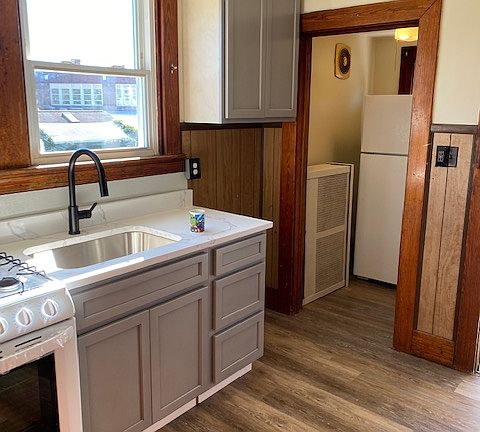 ALL NEW and INCLUDES Utilities!! First floor 2 Bedroom apartment, LR, DR Kitchen, and Bath; with unfinished basement. New: stove, refrigerator, kitchen cabinets, granite countertop, paint and refinished hardwood floor. Fenced rear yard, back deck and front porch. Backs to Arbutus elementary School, playground and walking distance to Hollywood Theatre and Sorrento's Pizza. 12 months. Include all utilities, pet fee is $300.