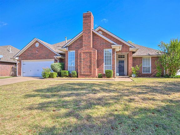 Welcome to this charming three bedroom, two bathroom home nestled in the coveted Copperfield neighborhood, right in the heart of Edmond. With its classic brick exterior, this residence exudes timeless elegance and curb appeal. As you step inside, you'll be greeted by the inviting atmosphere created by the combination of tile and wood floors throughout along with Real Wood Shudders and New Air Conditioner. The living room is a cozy haven with built-in shelving, providing both storage and a focal point for personal touches, and a fireplace that adds a touch of comfort and elegance to the space. The kitchen is a chef's dream, featuring modern appliances (new dishwasher), ample Granite counter space, and plenty of cabinetry for all your culinary needs. The adjacent dining area is perfect for family gatherings and entertaining guests. The three bedrooms offer generous space and comfort for your family. The primary bedroom offers an updated en-suite bathroom with a double vanity, custom tub, sleek walk-in shower, and large walk-in closet. The additional two bedrooms are versatile and can serve as guest rooms, home offices, or playrooms, allowing for flexible use of space. Step outside, and you'll find a well-maintained fenced in backyard with potential for gardening, relaxation, or outdoor activities. Whether you're enjoying a morning coffee on the patio or hosting a weekend barbecue, the outdoor space offers a perfect backdrop. Copperfield not only offers comfortable, functional living with its neighborhood park and pool but also the convenience of living in the heart of Edmond. You'll have easy access to local amenities, shopping, top schools, and the vibrant community that makes Edmond a wonderful place to call home. Welcome home!
