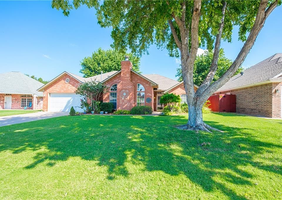 Darling home with nice sized backyard and beautiful landscaping. Some updates including dishwasher, disposal, and microwave. Roof and garage door replaced in 2013. 3 cm granite in kitchen, utility and baths. Windowsills have marble. Farm sink in kitchen with stacked stone back splash. Great floor plan with cathedral ceilings in living and fireplace. Huge master bedroom, with cathedral ceilings and fan. Master bath includes double vanities, separate shower and whirlpool tub plus large walk-in closet. Three additional bedrooms all with ceilings fans. Includes window treatments, Garage Door Lift, and Underground Sprinkler System.