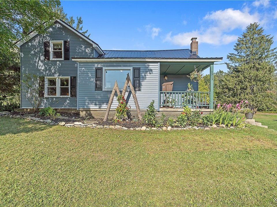 Country living at its absolute finest! Welcome to 1313 County Route 22, where this completely remodeled farmhouse style home sits on over 5 acres with so many upgrades. From the moment you step inside you experience the level of care and love this home has received. Natural light flows through the space with wood trim and decor that perfectly accents the new vinyl flooring. Kitchen has been completely gutted and remodeled with all brand new soft-close cabinetry, granite countertops, and stainless steel appliances. Oversized upper cabinets with tongue and groove ceiling really give this kitchen that WOW factor! Off of the kitchen are two bedrooms, with a nice sized walk in pantry/laundry room. Huge central dining area, perfect for entertaining, leading through a large barn door and into the living room. French doors bring you to a serene and private back porch and fully fenced in area. Solar powered string lights over the backyard give you an incredible experience at night. Very large and updated first floor bathroom and 2 more bedrooms upstairs conclude the interior. On the outside you will find a large 2 car, detached garage, Amish built shed, stone firepit, and veggie garden with pumpkins, corn, cucumbers, tomatoes, zucchini, and peppers! Other major upgrades to the home include BRAND NEW vinyl siding 2025, metal roof 2020, new electrical service 2021, furnace 2015, drilled well 2016, and more! Just an absolute gem of a home at this price point and ready for a new home buyer to care for it the way the sellers have! Schedule your showing today!