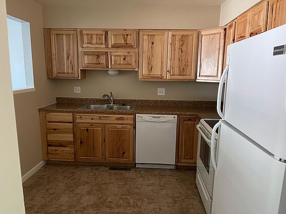 2 bedroom, 1 bathroom with washer and dryer, dine in kitchen, living room, new furnace, air conditioning, large shared back yard, sprinkler system and lawn care, single car garage, tile kitchen and bathroom, carpet living and bedrooms, new doors and windows, one level triplex, new paint new carpet Owner pays water, lawn care, sewer, NO PETS, NO SMOKING QUIET Living - Close to all amenities