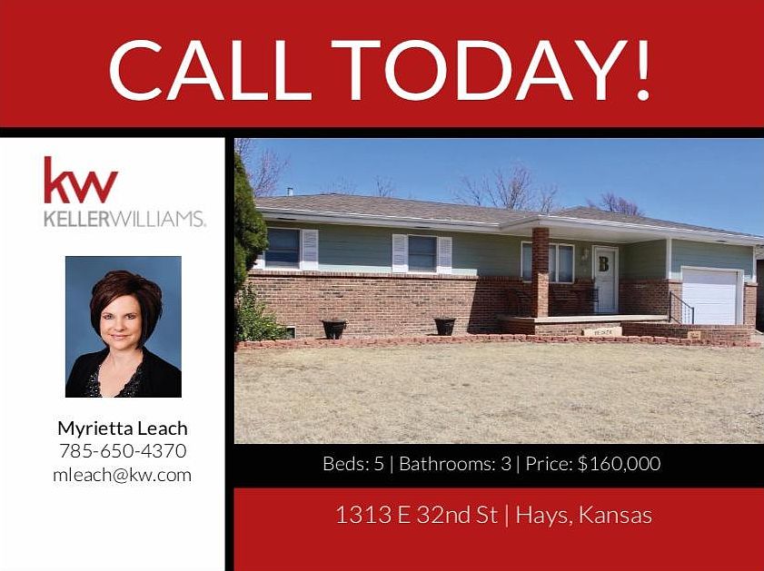 This 2320 square foot single family home has 5 bedrooms and 3.0 bathrooms. This home is located at 1313 E 32nd St, Hays, KS 67601.