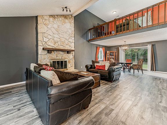 Large wooded creek lot with mature trees and loads of privacy. This home is perfect for feeling like it is in the country while still having the convenience of paved roads and located in the heart of Derby. The living room has vaulted ceilings, wood burning gas starter fireplace, with dining room. The kitchen has tons of cabinetry for storage and a island for a workspace. The master bedroom is located on the main floor and features a walk in closet plus a custom tiled shower in the master bath. Upstairs is a loft area which could be used as office space, gaming space, etc! 2 huge bedroom with a bathroom are also upstairs. The basement has a large family room area with a second woodburning gas starter fireplace, another bedroom, bathroom and a large storage room currently being used as batting cages. The backyard is spacious with a 12 x 12 shed, treehouse, & creek right behind it.