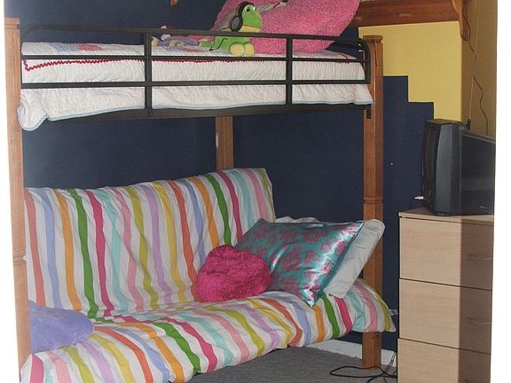 MAIN HOUSE: 4 bedrooms, 2 bathrooms, living w\ dining room and den\office, laundry room in garage INLAW SUITE: 1 bedroom, 1 bathroom, livingroom, kitchen, walk-in closet (can be accessed through main house or from the outside) LOTS OF LIVING AREA! HUGE BACKYARD WITH A SHED AND SANDBOX! New roof in 2005, updated breaker box and a|c in 1997, new beautiful landscaping, wood floors and berber carpet, ceiling fans through out house, working well Neighborhood Description Good Family neighborhood, nice neighbors