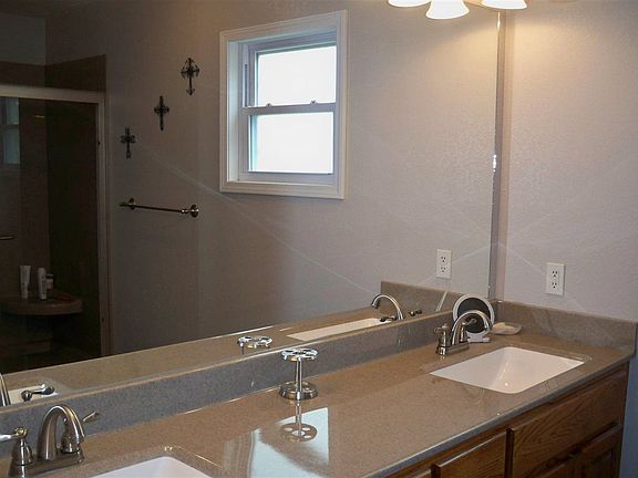 You must see the inside of this home. Recent addition on the back of the home makes this home much larger than it looks. Updates included beautiful master bath with onyx sinks and shower surround, kitchen counter tops & backsplash, windows, walk-in closet, mf laundry, basement bathroom, and roof. Basement is finished with family/rec room area, bath and office area. The exterior has vinyl siding so exterior maintenance is easy to manage. 2 car deep garage for storage and there is a small shed for your yard tools. Lot is fenced. Located close to the high school for easy access to the campus.
