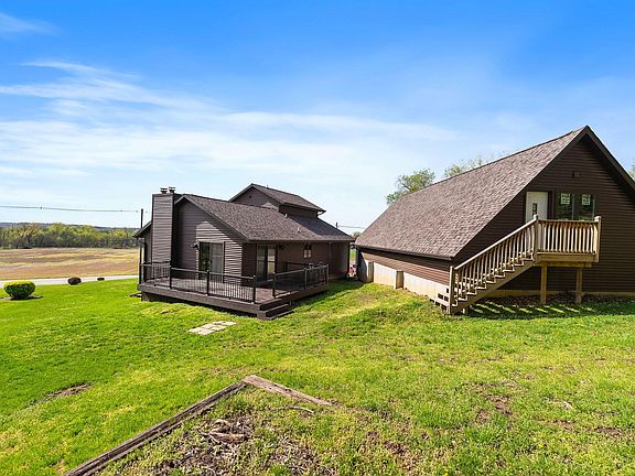 When you arrive at this home you are in awe of how peaceful and inviting it is outside of the house, with breathtaking views of the Mississippi. The massive shop next to the home is newly constructed by Wolf Construction giving you to plenty of parking for recreational activities like boats, RVs, ect. With an unfinished loft there is great potential for a game room or an additional living space. Walking inside of the home you are met with an open concept living room, dining room, and kitchen! The vaulted ceilings and the multiple windows make this home feel bright and airy. You can also cozy up by the fire place during the winter. This spacious home also includes 2 decks, great for hosting and any gatherings you have!