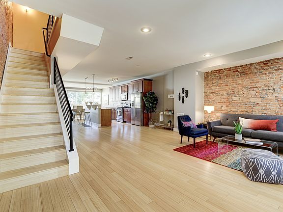 Cool & Contemporary Glamorous home in 16th St Heights offers three finished levels of fine living space all awash in glorious natural light, along with many architectural details (exposed brick and bamboo hardwood floors throughout main and upper levels) and high-end finishes throughout that will please your senses. Step through the welcoming front porch into the expansive, open main level. The spacious living room greets you before flowing into a chef’s kitchen complete with stainless appliances, granite counters, tile backsplash, center island, and wine cooler. An open dining area overlooks a deep, level backyard with patio, and off-street parking for two cars. Completing the main level is the oh-so-essential powder room. Upstairs is an impressive owners’ suite with vaulted ceiling, skylights, walk-in closet and private full bath with spa-style glass shower. The second level also has two additional bedrooms, renovated full bath, and convenient laundry room. More living space awaits you on the finished lower level featuring a large family room with kitchenette/wet bar and full bath. The separate egress makes this a great in-law suite! Leave the car at home! This quiet street is just a couple of blocks from the bustling Georgia Avenue corridor with its many small businesses, restaurants, and watering holes. Only ½ mile to Rock Creek Park which offers more than 1,700 acres of beautiful green space, as well as miles of natural and paved surfaces. Walkscore.com rates 1313 Kennedy St NW a “91 out of 100”, calling it a “walker’s paradise” with “good transit”!