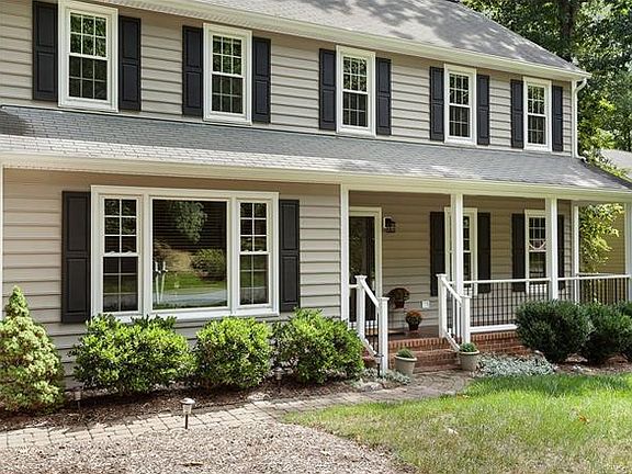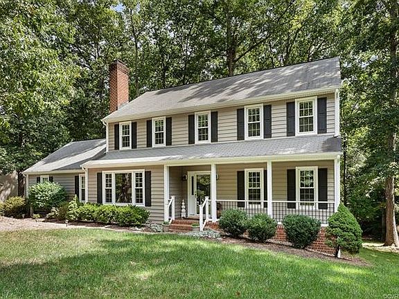 SUPER LOCATION! This beautiful 4 bedroom Colonial home, in the heart of Queensmill, is centrally located near Rt. 288, and Powhite Pkwy. and is close to awarding winning Midlothian Schools! The QM community pool and playground are just one house away! This home has been meticulously cared for & is in MOVE-IN READY! The interior boasts new neutral wall colors w/ white trim and molding through-out. Recently UPGRADED light fixtures, and hardware. Great eat-in kitchen with ceramic tile floor and backsplash, refinished cabinets and countertops, and SS appliances including a gas stove! 1st floor laundry room and updated half bath. Family room has a brick gas fireplace, built-in book shelves/cabinet, & a large picture window overlooking the front yard. Spacious formal dining room and an adjacent home office w/ hard wood floors complete the first floor. The exterior has NEW VINYL SIDING & GUTTERS (2016). The front porch has NEW RAILS & a stained concrete floor. Relax on the multi-level deck overlooking the large park-like backyard (The lot is .67 acre!). Gas heat & new gas water heater! Champion replacement windows! Two-car attached garage w/ Apple automatic door. Home warranty! MUST SEE!