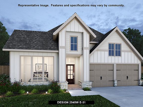 Extended entry with 13-foot ceiling leads to open kitchen, dining area and family room. Kitchen offers generous counter space, corner walk-in pantry and inviting island with built-in seating space. Dining area flows into family room with wall of windows. Game room with French doors just across from kitchen. Primary suite includes double-door entry to primary bath with dual vanities, garden tub, separate glass-enclosed shower and two large walk-in closets. Secondary bedrooms feature walk-in closets. Covered backyard patio. Mud room off two-car garage.