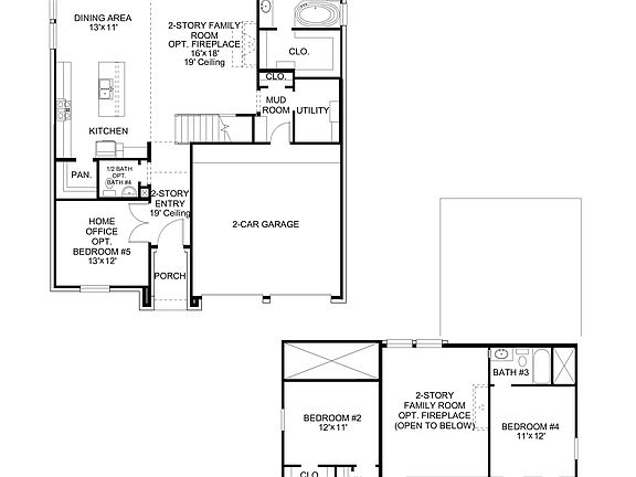 Beautiful two-story entry with 19-foot ceilings. Home office with French doors frame the entry. Two-story family room with a wall of windows opens to the kitchen and dining area. Island kitchen with built-in seating space and a corner walk-in pantry. Secluded primary suite with a wall of windows. Primary bath offers a French door entry with dual vanities, separate glass enclosed shower, large garden tub and a walk-in closet. The second floor boasts a generous game room with a wall of windows, secondary bedrooms with walk-in closets, linen closets, and a private guest suite complete with a full bathroom and walk-in closet. Utility room and mud room just off the two-car garage.