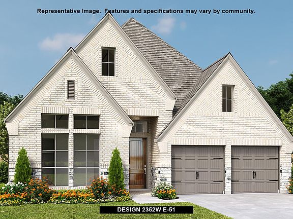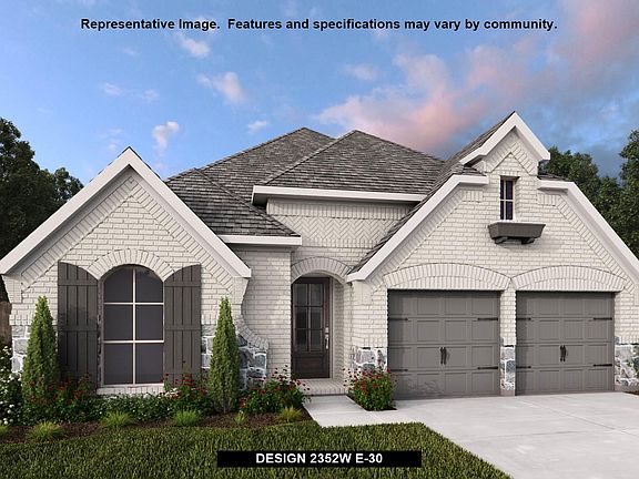 Entry with 12-foot ceiling leads to open family room, dining area and kitchen. Family room with a wall of windows extends to the dining area, Kitchen offers corner walk-in pantry and generous island with built-in seating space. Primary suite with wall of windows. Double doors lead to primary bath with dual vanities, corner garden tub, separate glass-enclosed shower and large walk-in closet. Home office with French doors set at back entrance. Secondary bedrooms, a full bath plus a guest suite complete this open one-story design. Two-car garage.