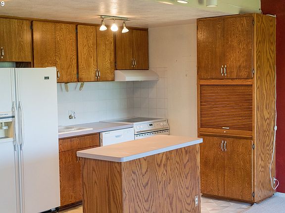 - Appliances: Dishwasher, Plumbed For Ice Maker, Range Hood, Free-Standing Range, Free-Standing Refrigerator, Island, Appliance Garage