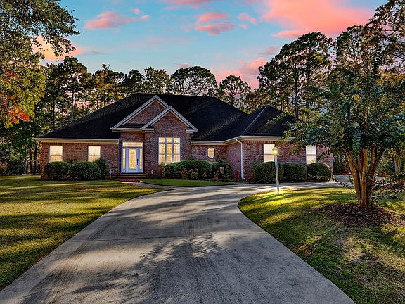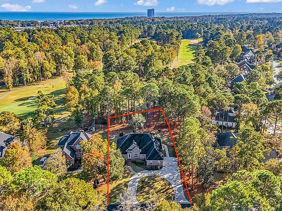 LOCATION, LOCATION! 0.52 acre lot in the gated Prestwick Country Club overlooking Hole 7 of Prestwick's prestigious golf course! NEW ROOF March 2024! This all-brick, one-level home has had one owner and has been maintained well. This beautifully landscaped lot includes irrigation, a large circular driveway in the front for plenty of parking, a fenced in backyard with 2 gates (only a year old) and an expansive 34 ft long backyard deck to enjoy the large backyard and its stunning views. The back deck has a designated storage closet convenient for your golf clubs, patio cushions, beach equipment, etc. All three bedrooms have their own en-suite bathroom, which is very rare! The great room has 12 ft tall ceilings with a DOUBLE-SIDED FIREPLACE (propane) flanked with french doors on each side to the Carolina Room with gorgeous golf course views. The rest of the home has 9 ft. ceilings and lots of windows to make the home bright and spacious, and crown moulding throughout the home. The large kitchen has lots of cabinets, hard surface countertops, breakfast bar and breakfast nook, and stainless steel appliances. The large primary suite has lots of space, walk-in closet, and en-suite with garden tub and shower. The laundry room includes a utility sink and extra room for storage. This home needs some cosmetic updates which is reflected in the price - ready for its new owner to make it their own. This lot and location is amazing! HOA fees include cable TV with premium channels, internet, trash / recycle / yard debris pickup, security guards / gated community. Amenities include a Golf Course designed by Pete Dye, clubhouse, large outdoor pool area and cabana, and tennis & pickle ball courts. Prestwick is located between Myrtle Beach and Surfside Beach only 1.5 miles to the ocean and convenient to Market Common and Myrtle Beach State Park. What are you waiting for?