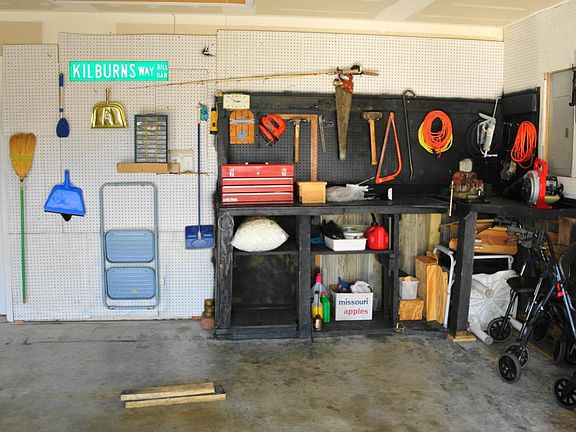 Such a well-planned home--double walk-in closets in master suite. Even 2nd bedroom has walk-in closet. Master bath equipped with walk-in shower with seat and safety bars. Newer heat/air, roof, water tank, ceramic tile. Fully equipped kitchen includes frig. Skylight in bath. Extended garage complete with workbench and extra storage shelving. Washer/stay stay. Smoke and pet free. Alarm system.